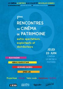 À partir de 10h30. Le Collectif NOUVELLES BOBINES ! et le Dietrich donnent rendez-vous aux spectateurs et aux professionnels jeudi 23 juin au cinéma Le Dietrich à Poitiers pour ces 1res rencontres du cinéma de patrimoine entre spectateurs, exploitants et distributeurs. Une journée exceptionnelle, riche en films inédits et en version restaurée, rencontres et surprises. Un événement unique à ne pas rater !